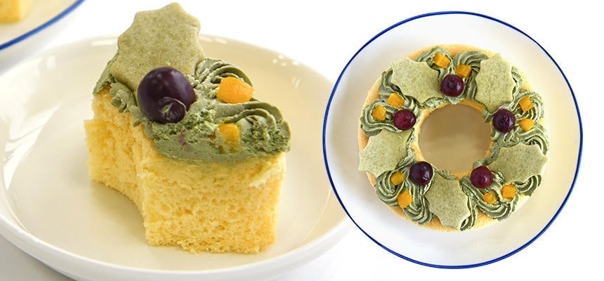 クリスマスリースをイメージしたシフォンケーキです。クランベリーとマンゴーを使って華やかなクリスマスケーキに仕上げました。特別な日のデザートに。プレゼントにもおすすめです。(内容量:120g、サイズ:直径約11cm×高さ3cm、価格:1,980円(税込)、原産国名:日本)