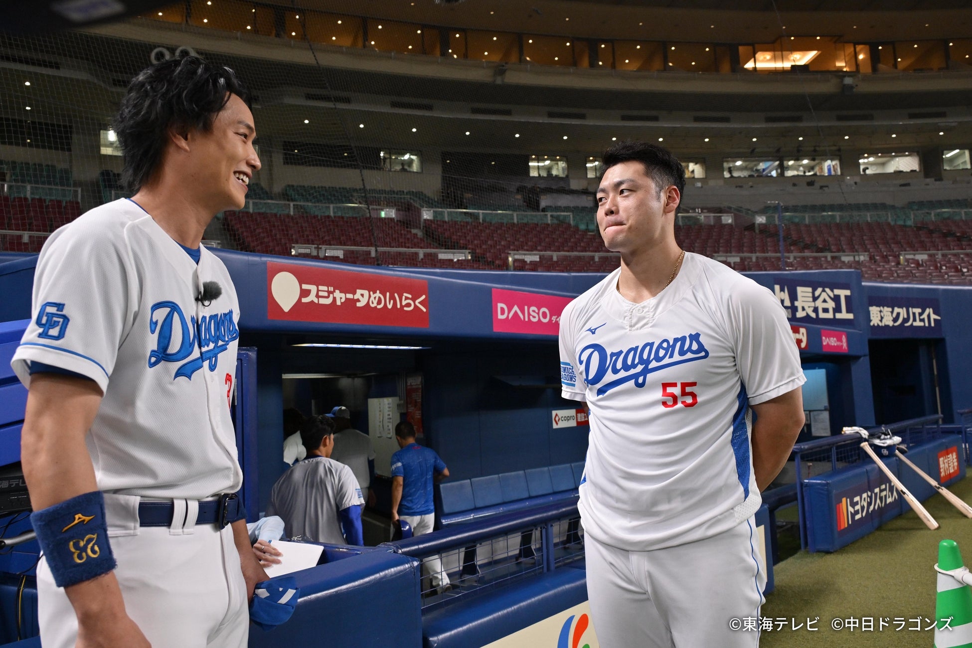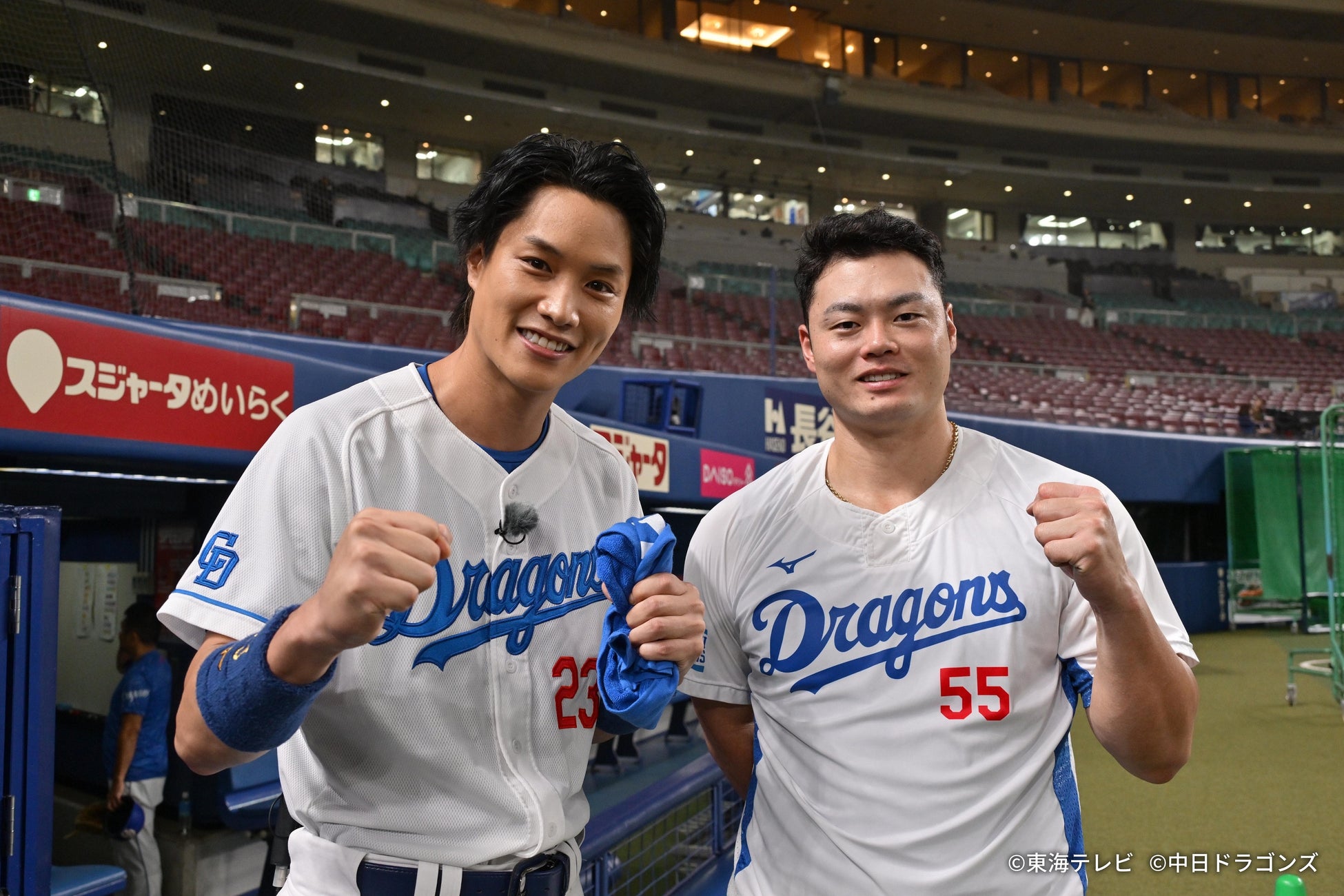 僕も個人の結果はそれなりに上がってきているので、最後まで頑張ります」と話す細川選手に対して、「僕もドラマを通して中日ドラゴンズを盛り上げるように頑張りますので、引き続きよろしくお願いします!」と、互いにエールを送りあった。