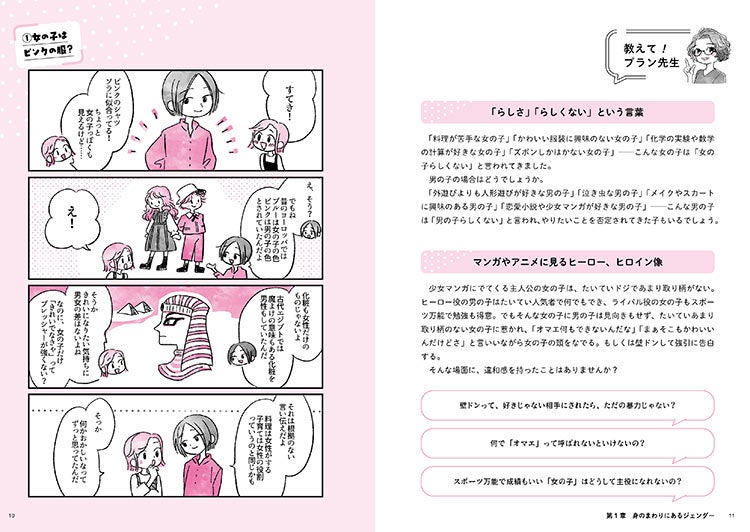 女の子たちが、ジェンダーによる束縛や強制から自由になり、本来持つ力を発揮して世界に羽ばたくことができるよう後押しする本書。プランが持つ豊富な知見とデータに基づき、身近にあるジェンダーの壁から、国内外の女の子が直面する問題、ジェンダーフリーな社会を作るための取り組みまで、漫画をまじえ中高生向けに分かりやすく解説しています。