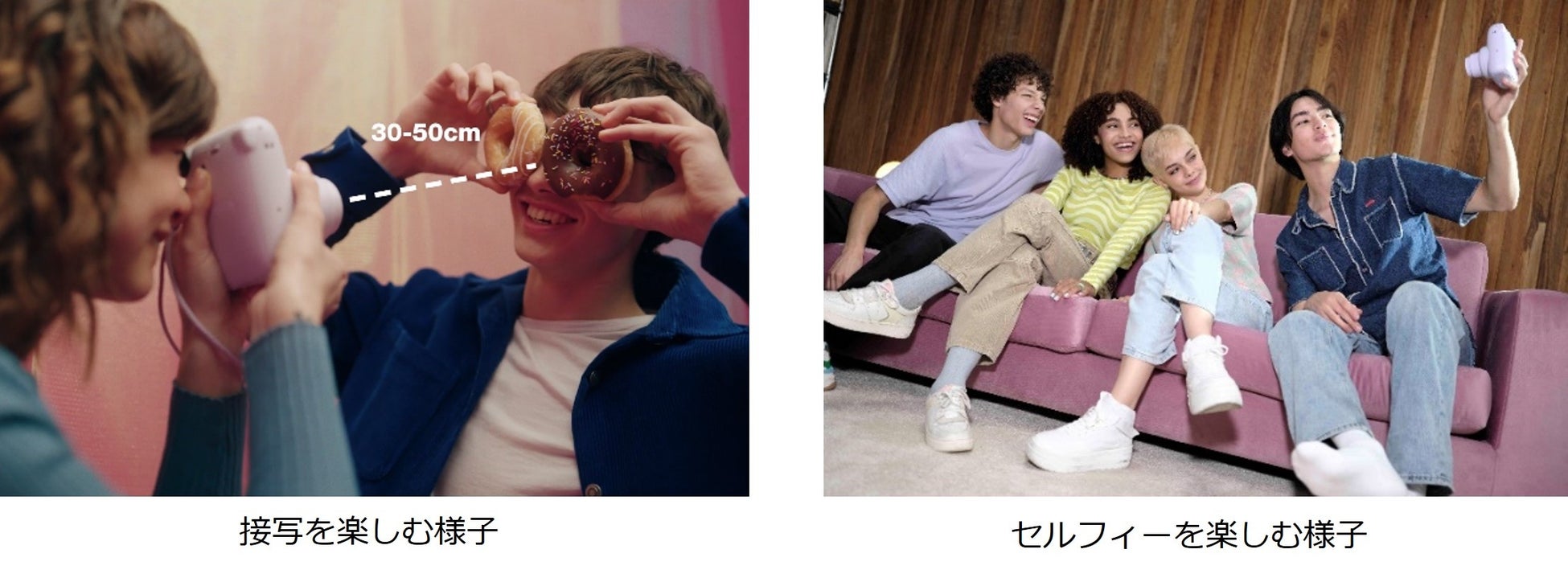 「mini 12」は、2020年5月に発売した「mini 11」でご好評いただいている「オート露光機能」を搭載し、撮影シーンに合わせた最適な明るさで撮影できます。また、レンズを一段階回すだけで、接写やセルフィーに適した「クローズアップモード」に設定可能。接写では、ファインダーから見える視野と実際のプリントに写る範囲のズレを防止する機能をエントリーモデルとして初めて搭載し、誰でも狙い通りの接写を楽しめます。さらにセルフィーでは、レンズの横にある「セルフィーミラー」を使用することで、プリントイメージを確認しながら撮影できます。