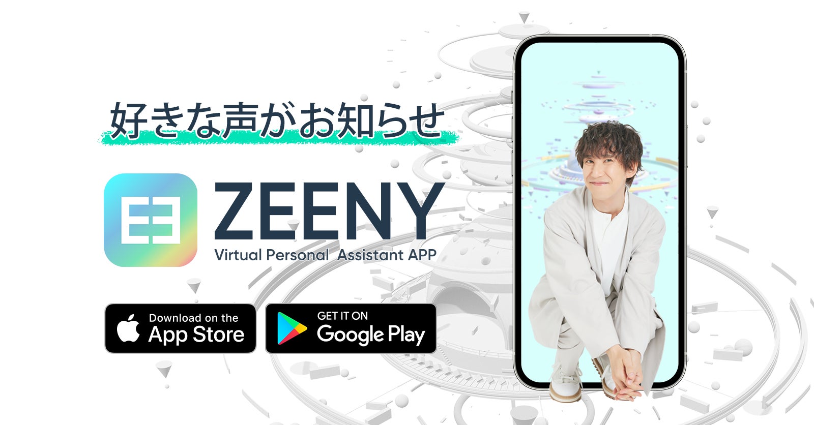 音声で時報、予定、目覚ましなどをお知らせする、iOS/Androidアプリ『Zeeny アシスタント』内『Zeeny ボイスストア』では、平川大輔の録り下ろしアシスタント音声をご購入いただけます。毎時の時報や、リモート作業で忘れがちなスケジュールも10分前になるとあなたの好きな声でお知らせしてくれます。