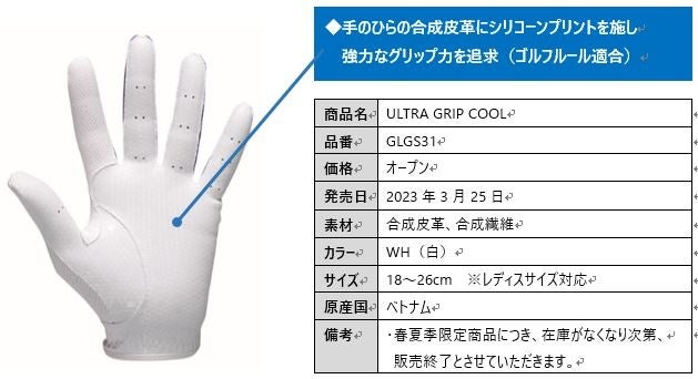 ブリヂストンスポーツ株式会社は、シリコーンプリントで高いグリップ力を追求した『ULTRA GRIP』から夏用モデル『ULTRA GRIP COOL』(GLGS31)を3月25日に、盛夏向けアイテムとして『アイスバッグ』(GAG311)を4月14日に発売します。価格はすべてオープンです。