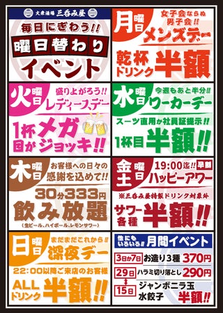 | 月曜日から日曜日まで開催!お得で楽しい毎日通いたくなる【曜日イベント】 |
