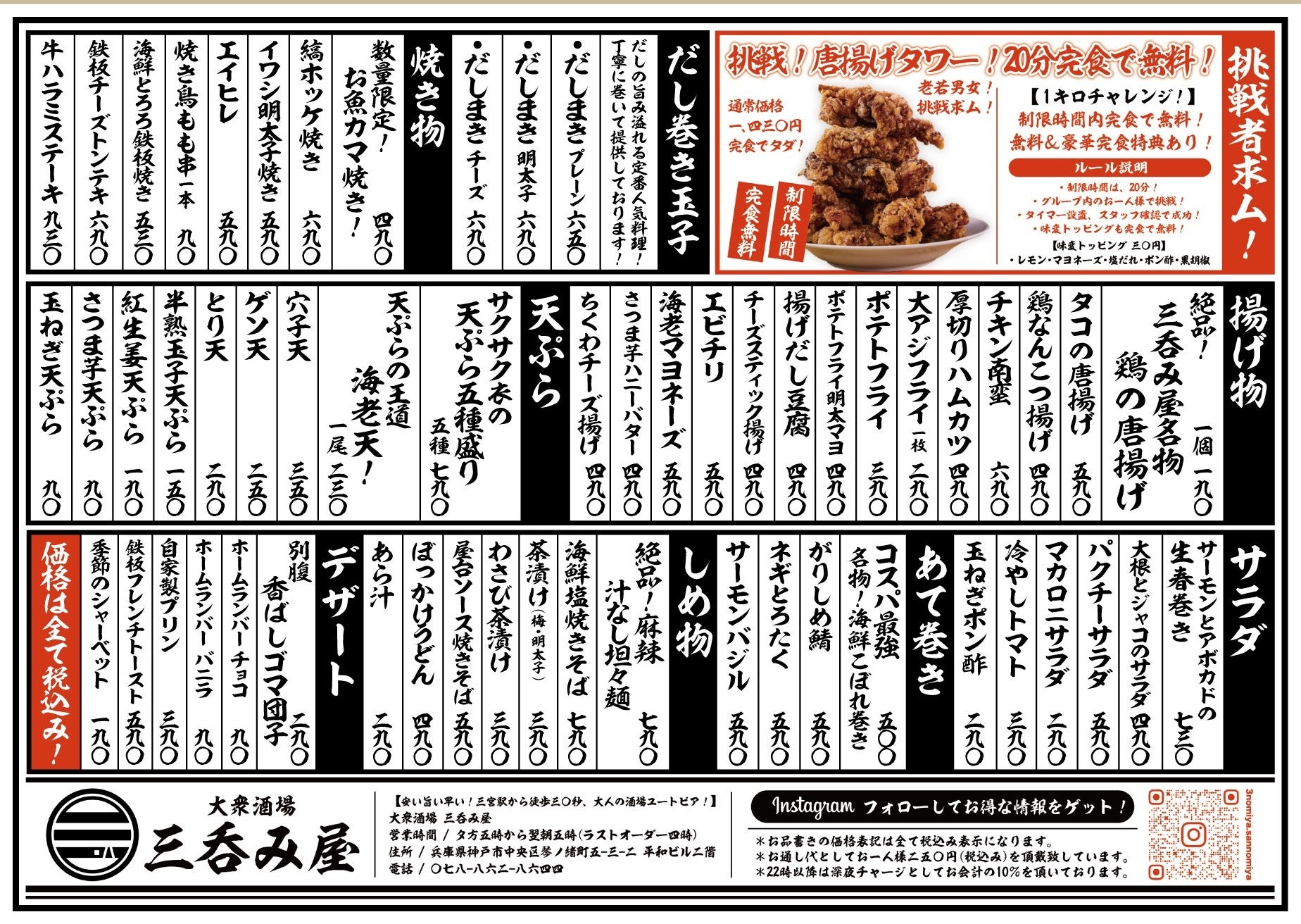 - 365日"安い・うまい・早い"の三拍子揃った庶民派居酒屋「大衆酒場 三呑み屋 三宮店」