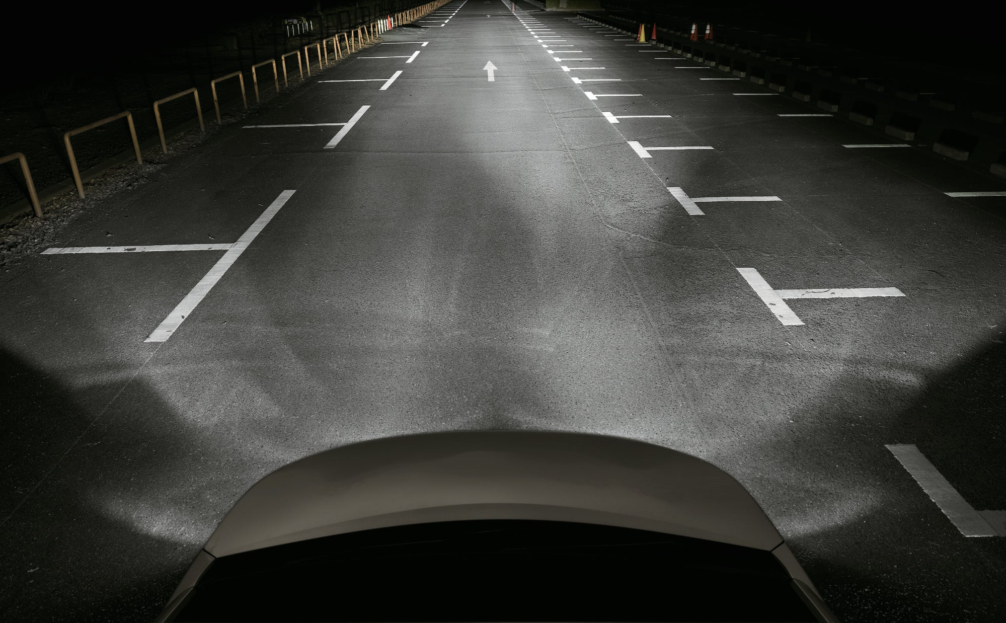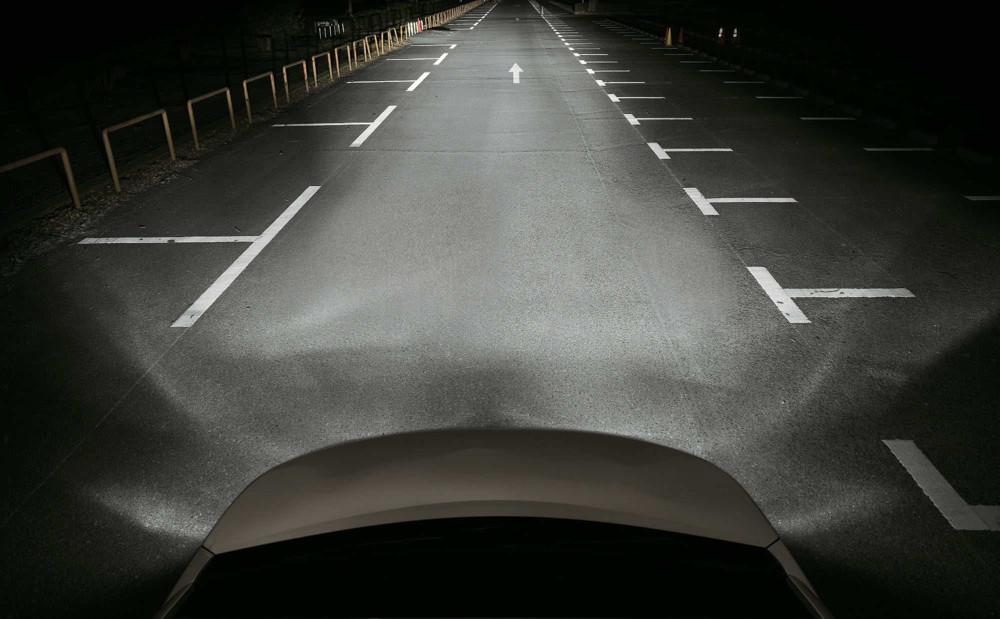 H4バルブ上側に高輝度LEDを実装することで、照射範囲を広げることができ、H4バルブ特有の手前側の暗さを解消しました。常時点灯するため、Hi/Loビーム共に路面をしっかり照射します。
