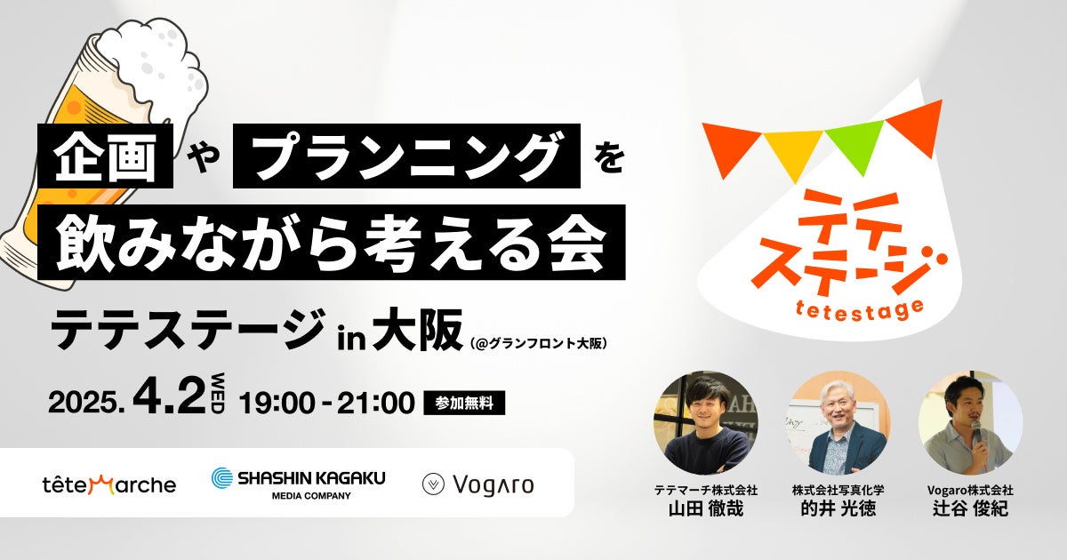 企業向けSNSマーケティング支援を中心としたビジネス展開をするテテマーチ株式会社(本社:目黒区、代表取締役:上田 大介)は、2025年4月2日(水)に関西のSNS担当者が集い企画やプランニングを飲みながら考えるリアルイベント「テテステージin大阪」を開催します。