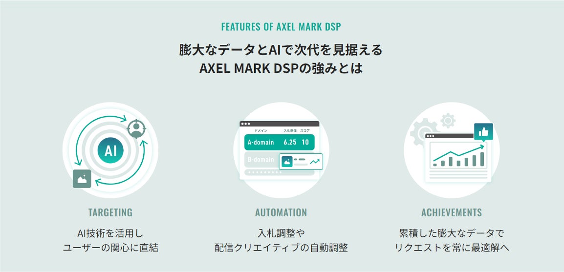これまでアドネットワーク領域で培ったデータ分析技術や広告効果にこだわった案件運用力をもとに、ポストクッキー時代に対応した広告主向け広告配信サービスとして『AXEL MARK DSP』を開始いたします。