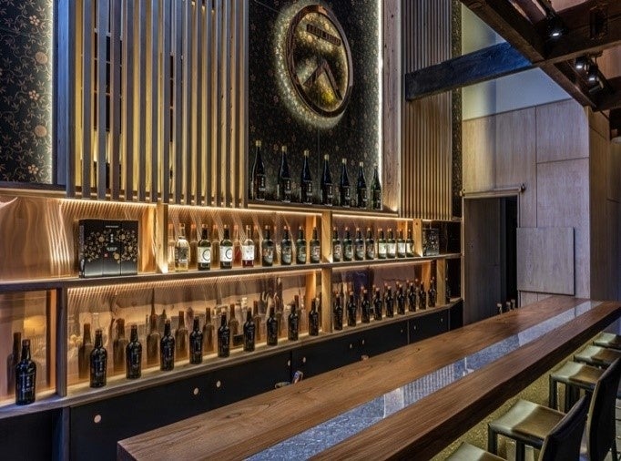 壁紙には江戸時代から続く唐紙屋を継承する雲母唐長(KIRA KARACHO)の唐紙を用いるなど、ボトルデザインと同様に店内を四季の美しさで包みこみました。