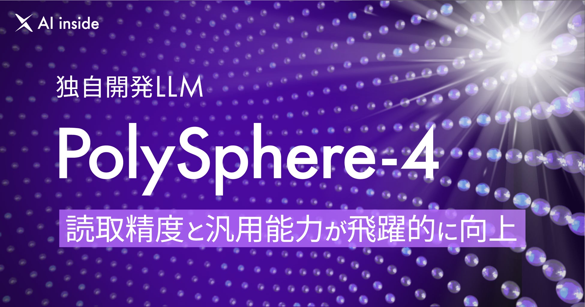 AI inside 株式会社(代表取締役社長CEO:渡久地 択、本社:東京都港区、以下「AI inside」)は、独自開発の大規模言語モデル(LLM)「PolySphere-3」を「PolySphere-4」へメジャーアップデートしました。