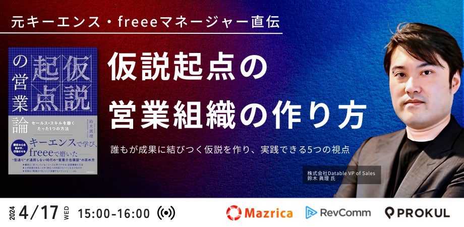 参加費:無料参加者特典:抽選で10名様に鈴木氏著書の「仮説起点の営業論 セールス・スキルを磨くたった1つの方法」をプレゼントします