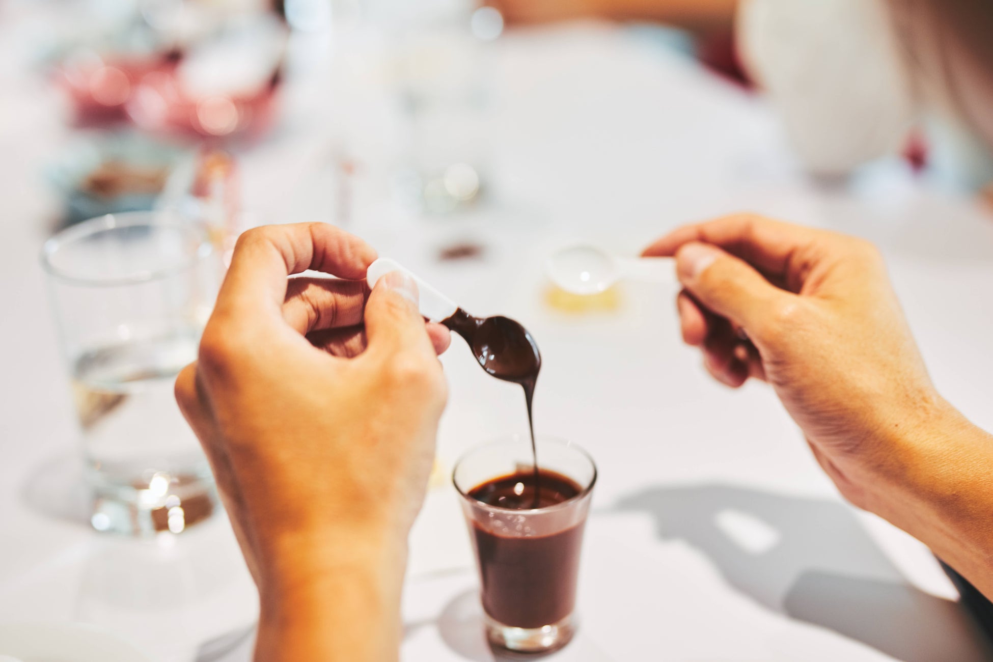 カカオマス、カカオバター、ミルク、砂糖の配合を0.1%単位で調整する。産地の個性を活かした彩り豊かなカカオリカーを掛け合わせる。味わいと香りの可能性は無限大、技術を重ね、時間と手間のかかる工程を経て、 世界に一つだけの個性豊かなクーベルチュールが作り上げられます。 この地でしか作れない。この人でしか作れない。唯一無二のチョコレートをお届けします。