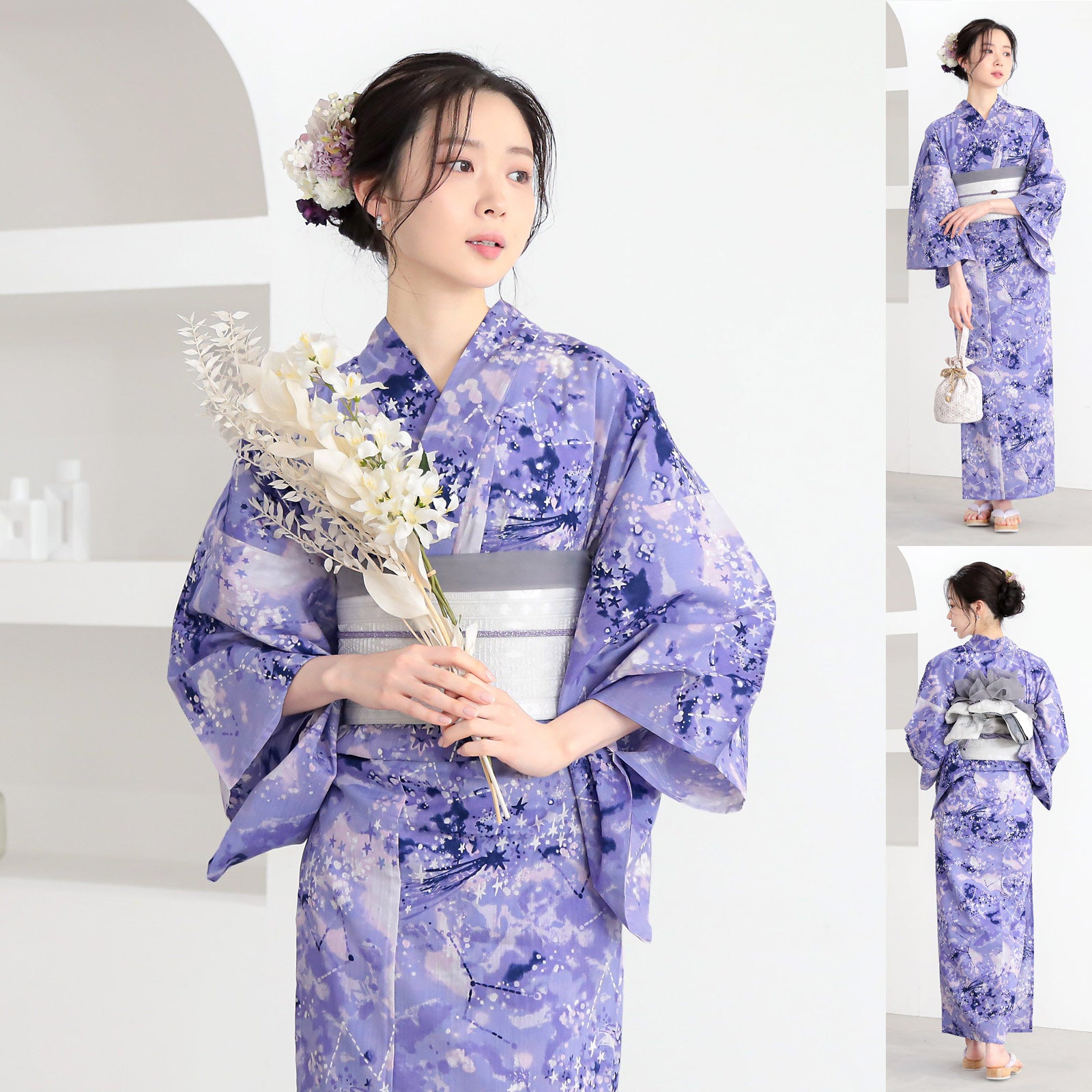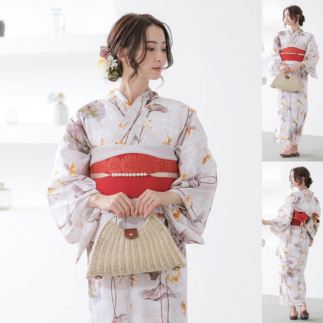 浴衣の柄の魅力を最大限に引き出す帯の色合わせはもちろん、「半幅帯」や「しわ兵児帯」との相性など、細部まで計算し尽くされたプロのスタイリング。和装の知識がなくても、届いたセットをそのまま着るだけで、周りと差がつく「こなれ感」のあるお洒落な浴衣姿が完成します。