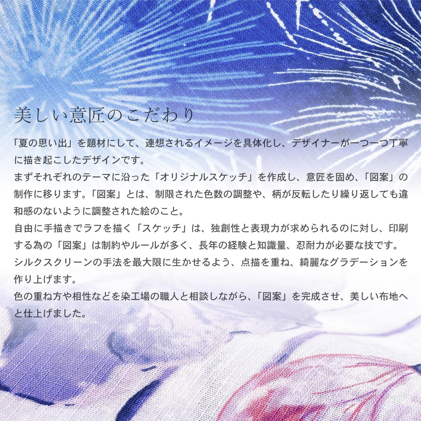 楽しい季節をより鮮やかに彩り、特別な思い出として心に残る、そんな浴衣を目指しています。