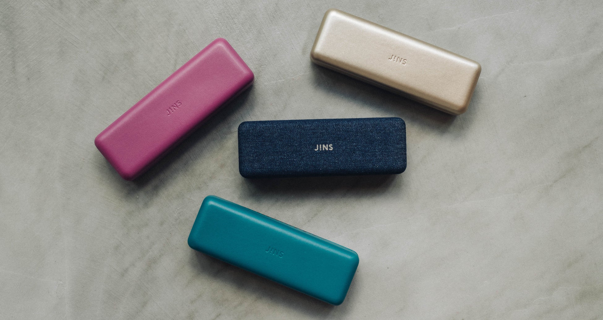 JINSでは店舗やオンラインショップでアイウエアをご購入いただいたお客様へメガネケースとセリート(メガネ拭き)を無料でお渡ししています(※一部対象外商品があります)。2023年3月には、アイウエアだけでなくケースでもお客様に選ぶ楽しさを提供したいとメガネケースのラインアップを刷新。それまで2種のみだったところ、定番4種と、トレンドを取り入れたトレンドケース4種の計8種にバリエーションを増やし大変ご好評をいただいています。
