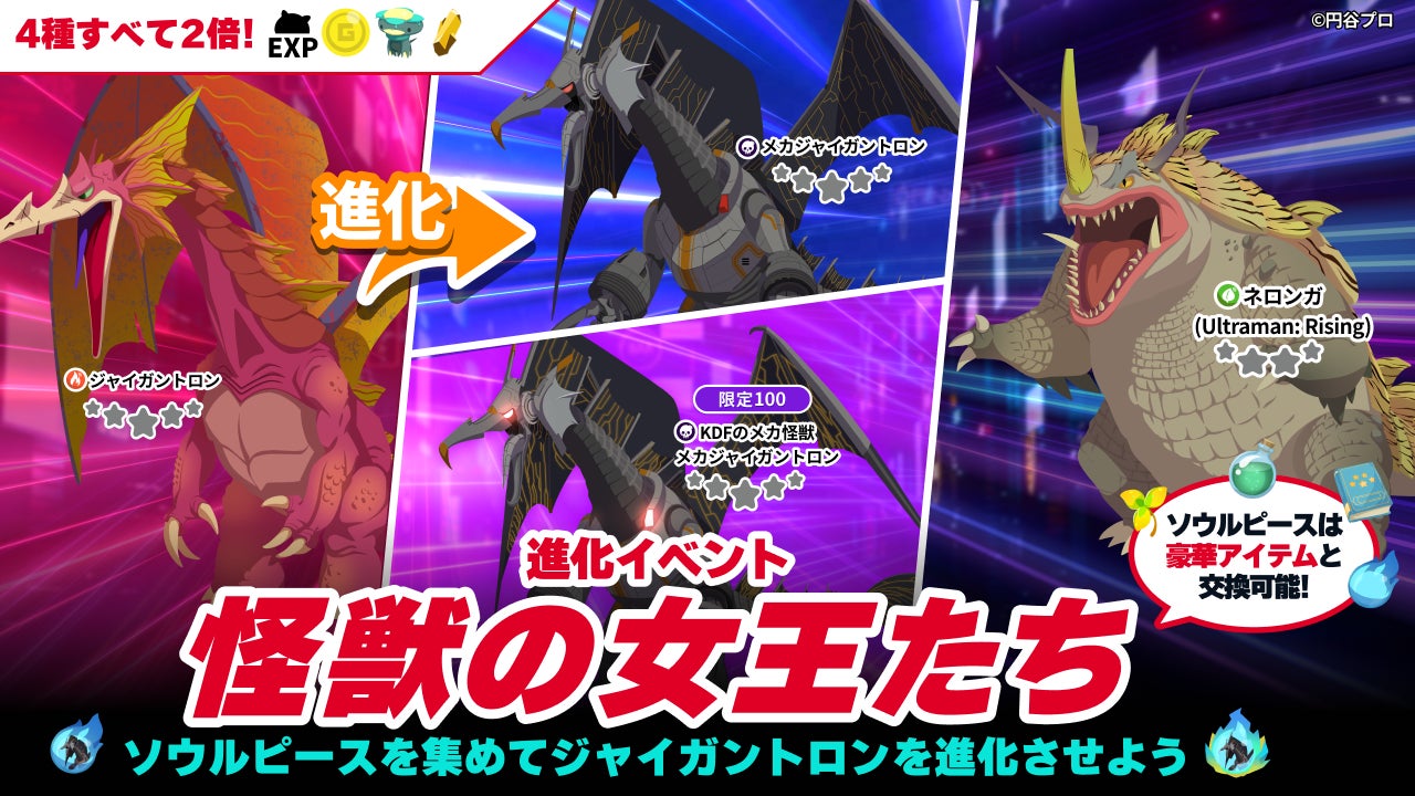 ■イベント限定キャラクター★5「ジャイガントロン」と★4「ネロンガ (Ultraman: Rising)」が確率でドロップ!進化イベント「怪獣の女王たち」開催!