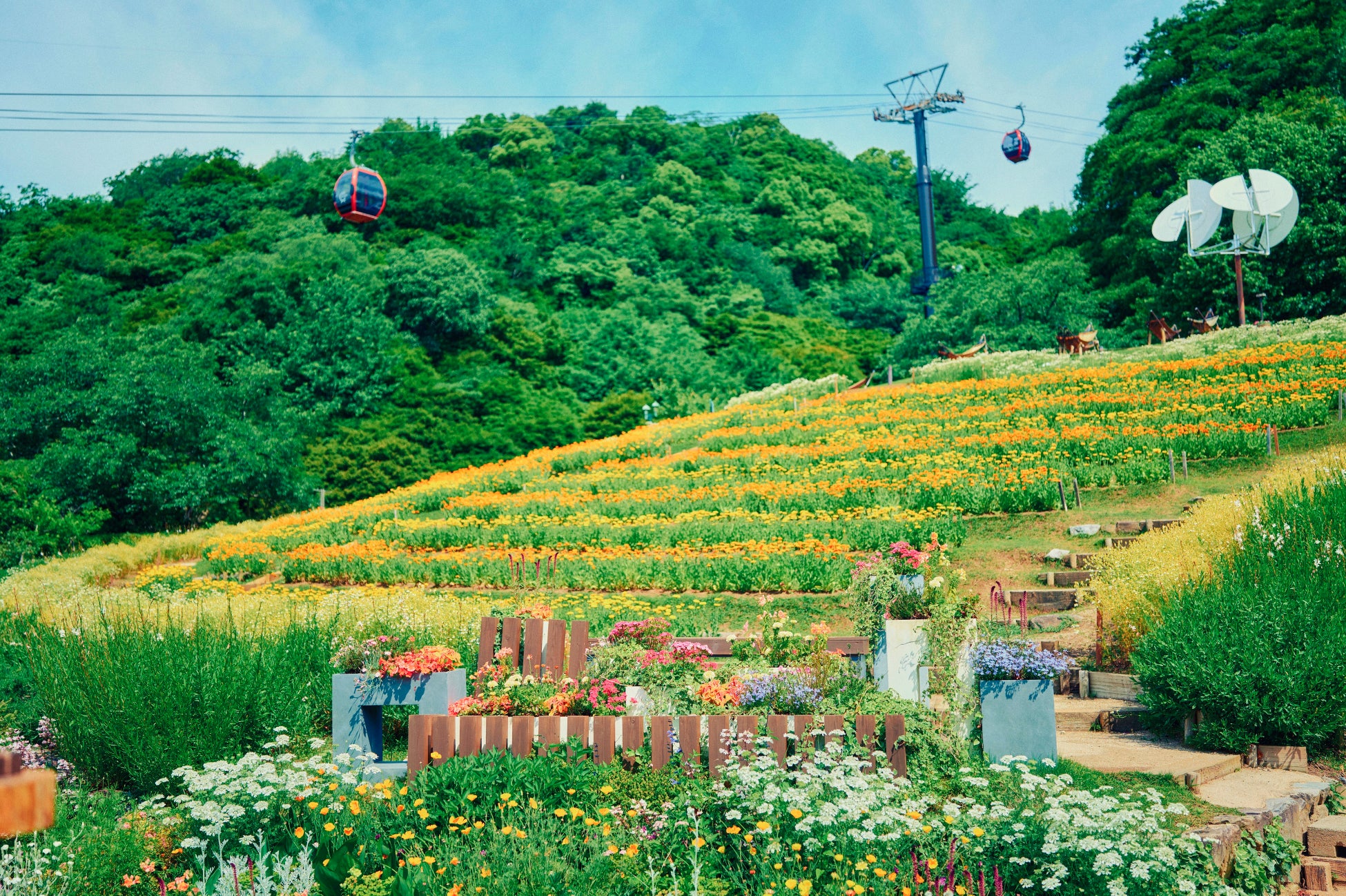 新幹線・神⼾市営地下鉄「新神⼾駅」より徒歩約5分。神⼾市街地や北野異⼈館からすぐのアクセスの良いリゾート施設です。ロープウェイで神⼾・京阪神の街並みを眼下に眺めながら、約10分間の空中散歩をお楽しみいただくと、四季折々約200種75,000株のハーブや花々がお迎えします。レストランやカフェ、テラスで⾷事やスイーツを。ピクニックを楽しんだりハンモックでのんびりくつろいだりと、1⽇を優雅にお過ごしいただけます