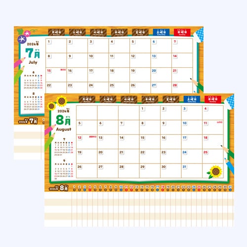 ■マンスリーカレンダー&ガントチャート(7月・8月) 別紙仕様