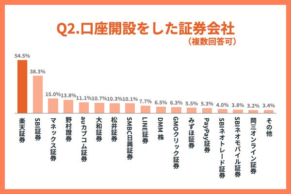 1.投資目的で口座開設をした証券会社には「楽天証券」が最も多く、2位には「SBI証券」が選ばれました。