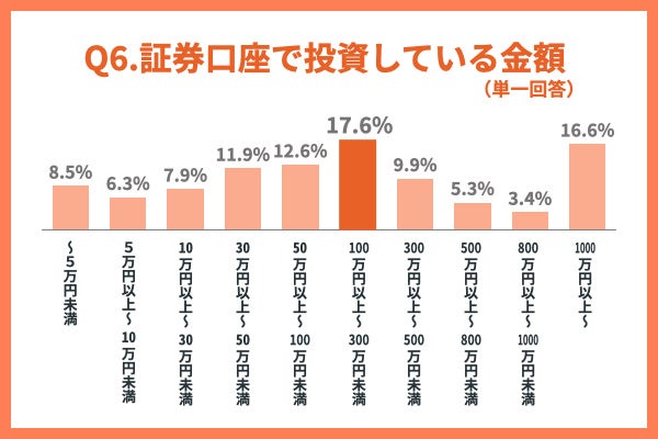 【質問6】現在、証券口座で投資している金額はどのくらいですか?(単一回答)