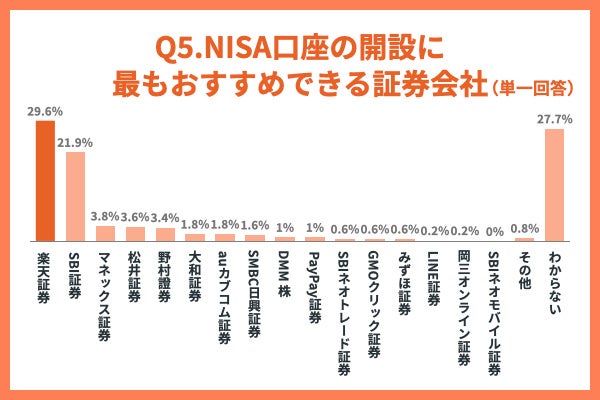 【質問5】NISA口座の開設に最もおすすめできる証券会社を選んでください。(単一回答)