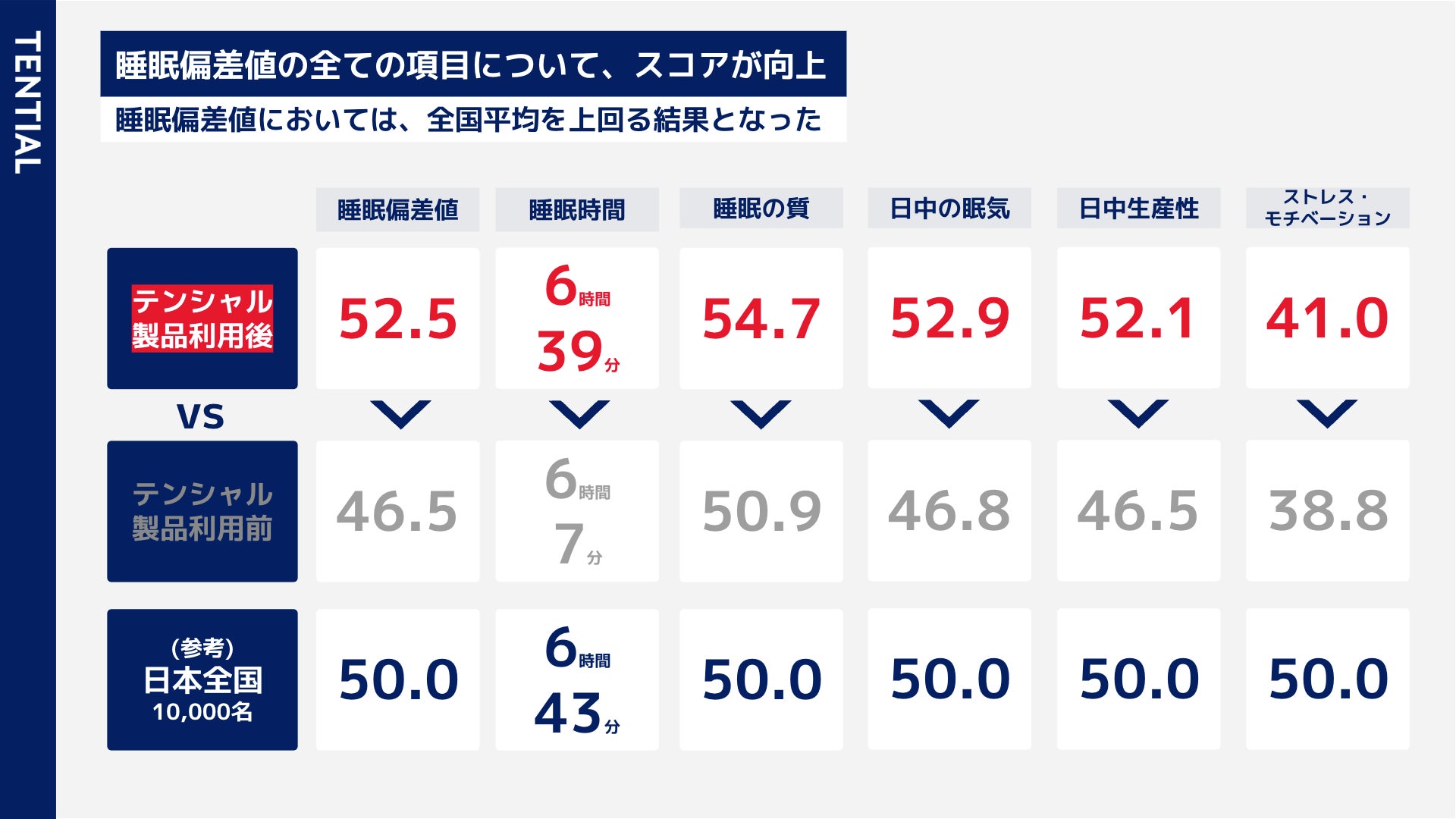 睡眠偏差値の全ての項目についてスコアが向上した