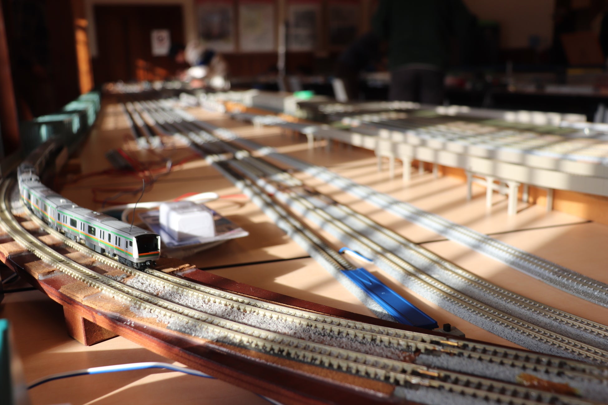 会場には鉄道模型(Nゲージ)の巨大レイアウトが登場し、新幹線や話題のクルーズトレイン、関西でおなじみの電車が走り抜けます。時間によって走行している電車は違いますので、運が良ければ連結した長い長いNゲージを見れることも⁉