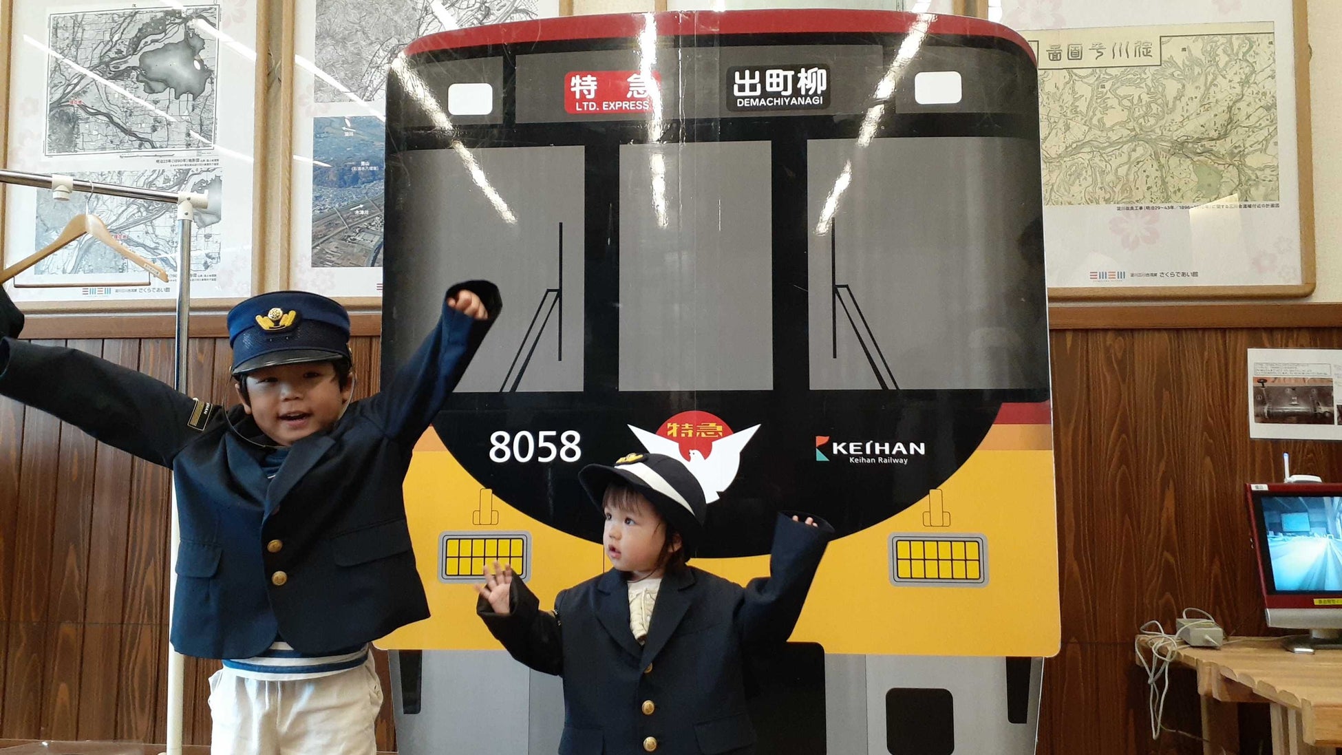 京阪電車パネル展示&こども車掌制服記念撮影コーナー