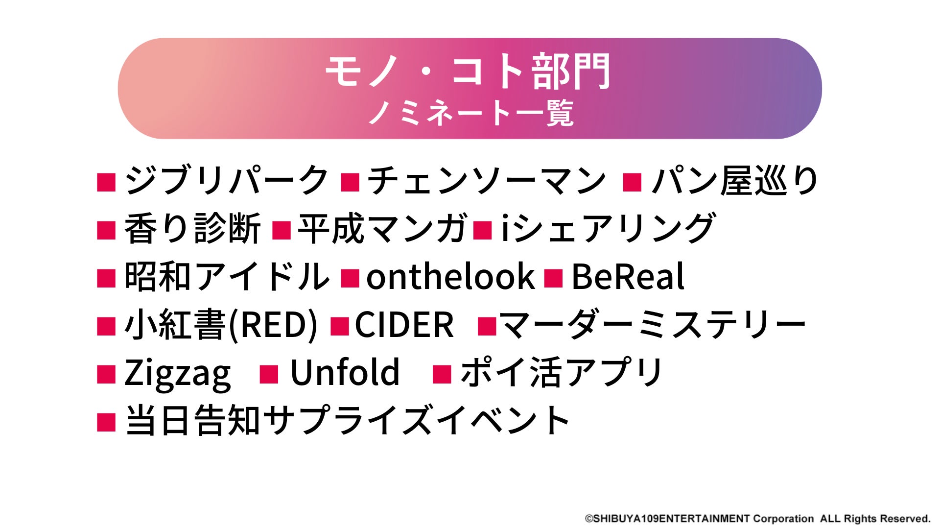 調査対象:SHIBUYA109 lab. 独自ネットワークとSHIBUYA109渋谷店来館者のaround20(15歳~24歳)女性