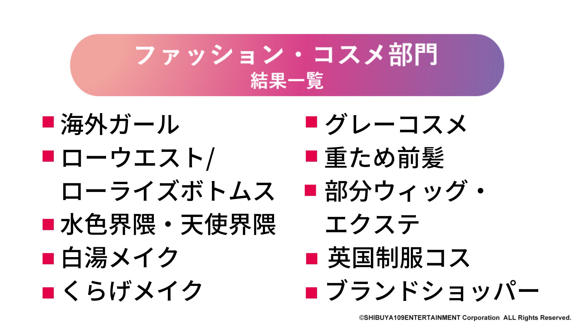 ※ 公開データの引用・転載の際は、『SHIBUYA109 lab.調べ』と明記いただきますようお願い申し上げます。
