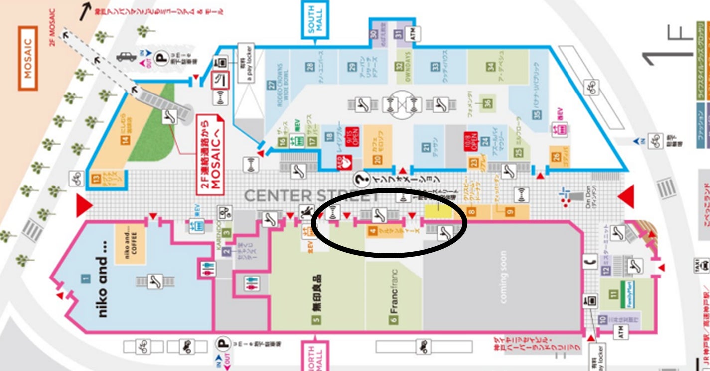 神戸ハーバーランドumie 1階 センターストリート (下図黒枠部分)