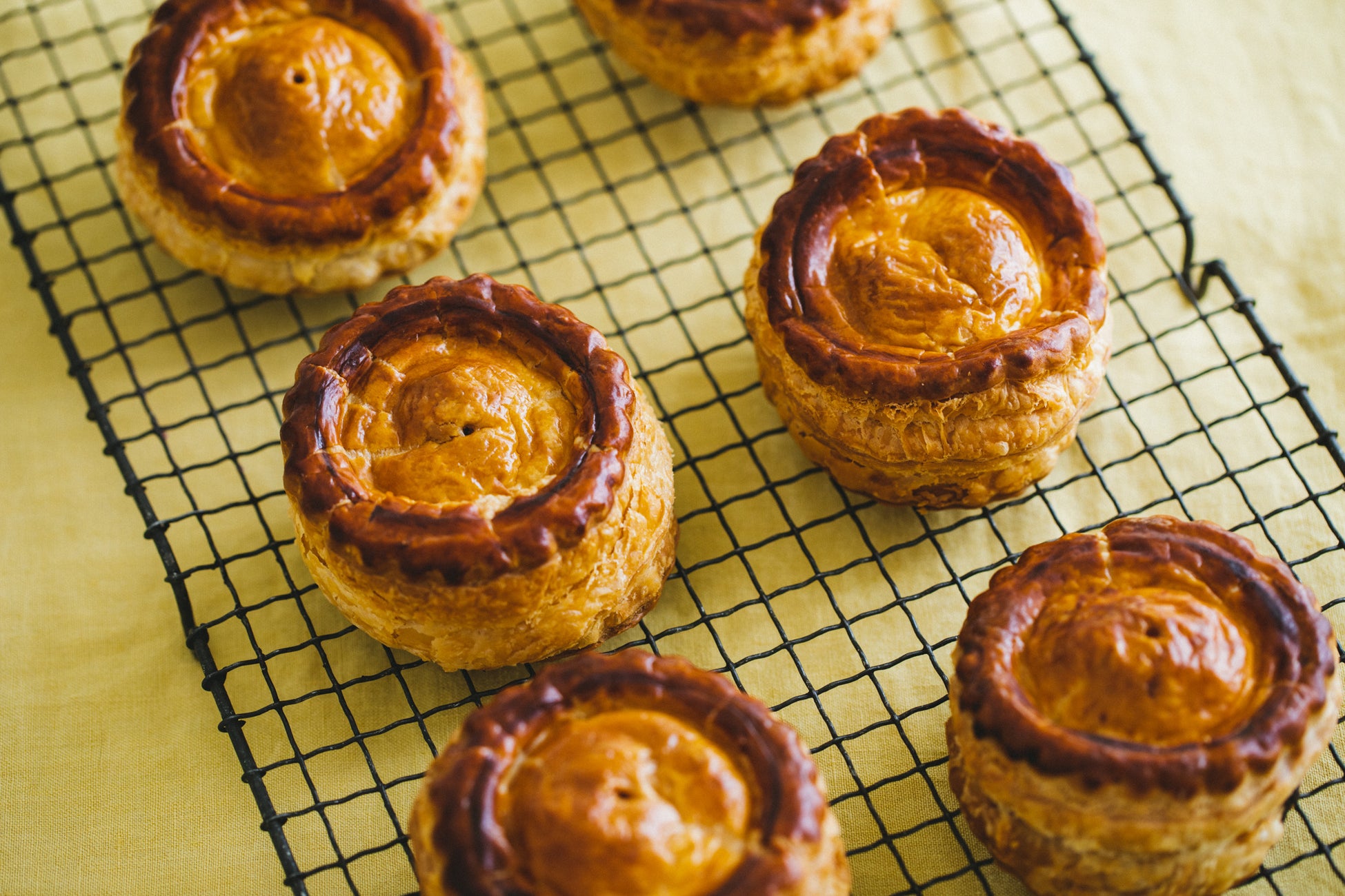 看板商品は、神戸牛のミンチを使った「神戸牛のミートパイ」。国産バターを混ぜ込んで作った432層のパイは、噛めばパリッ・サクッ・ホロッと崩れ、あとにバターの香ばしさとコクを口の中に広げます。フィリングは、神戸の老舗精肉店・大井肉店の神戸牛のミンチを、刻み玉ねぎ、ゆで卵と共に、シンプルな味付けで炒めて仕上げました。シンプルな味付けだからこそ、肉の旨味がいっそう引き立ちます。