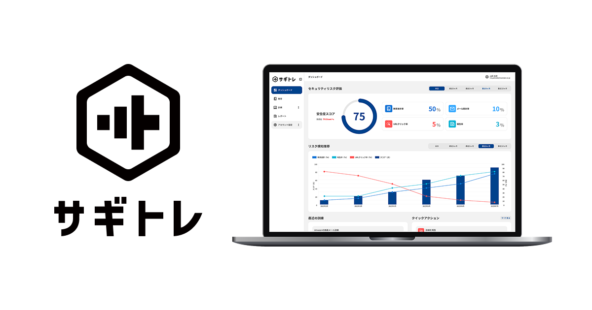 「サギトレ」は、法人におけるセキュリティ教育やリスクへの対応力向上を目指した、詐欺メール・SMS訓練サービスです。