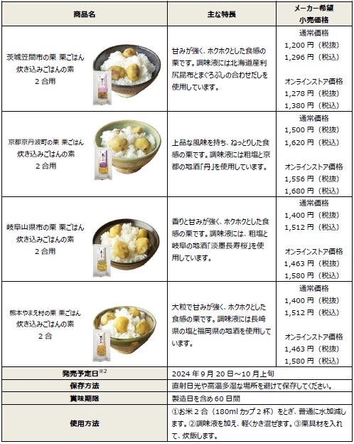『栗ごはんの素』は栗の生育状況に合わせた旬の時期に、2024年9月20日(金)~10月上旬頃※2より順次販売をスタートいたします。