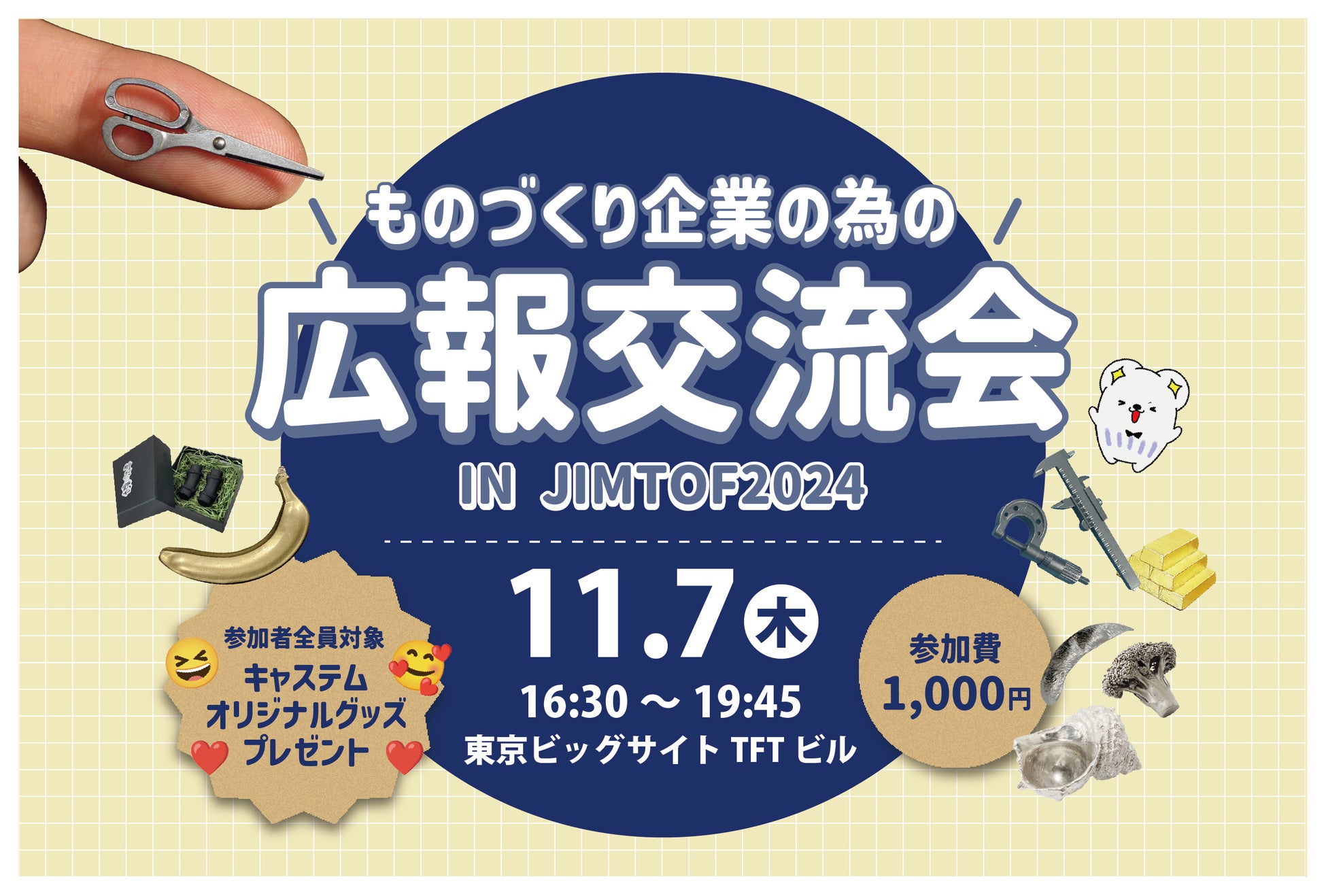 精密金属部品メーカーの株式会社キャステム(広島県福山市、代表取締役:戸田拓夫)は、大野精工株式会社の特別協賛のもと、2024年11月7日(木)16:30~ 東京ビッグサイトTFTビル9階研究室907にて企業の広報ご担当者向けの交流会を開催いたします。本イベントでは、異業種の広報担当者同士のネットワーキングと広報戦略の共有を目的としたワークショップも実施いたします。