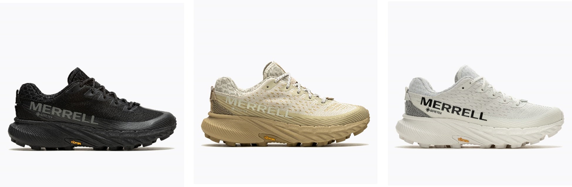 「AGILITY PEAK 5 GORE-TEX®」には、必要な個所にそれぞれ通気性や耐久性をもたらす緻密なアッパー構造”E-Mesh”を用い、ブラック、オイスター、ホワイト(ウィメンズのみ)の落ち着いたカラートーンを採用したことで、洗練された見た目を実現し、タウンでの活用にフィットします。ここに業界随一の透湿防水性を発揮する”GORE-TEX®メンブレン”を搭載することで、突然の荒天にも左右されず、常にドライな足元を保ちます。更に特筆すべきは圧倒的なグリップ力で本格的なレースでも重宝される”Vibram MegaGrip”アウトソールにVibram社の最新技術”Traction Lug”を敷設したハイパフォーマンスなソール構造です。街中だけでは大袈裟なスペックですが、週末のキャンプ~ライトなアウトドアアクティビティまで足を延ばせば、その汎用性の高さこそが商品の底力として証明されます。そして、厚底のソールユニットを構築するミッドソール部分にはサステナブルな製造工程を背景にもつ超軽量ミッドソール”FloatPro™”を採用。長時間の着用で感じられる疲れ難さは、ミッドソールそのもののヘタリ難さや優れた反発弾性による歩行推進力や安定性が寄与することで実現します。「AGILITY PEAK 5」は、MERRELLの新たな定番として今後もカラーバリエーションとアッパーパターンの拡充し続けます。