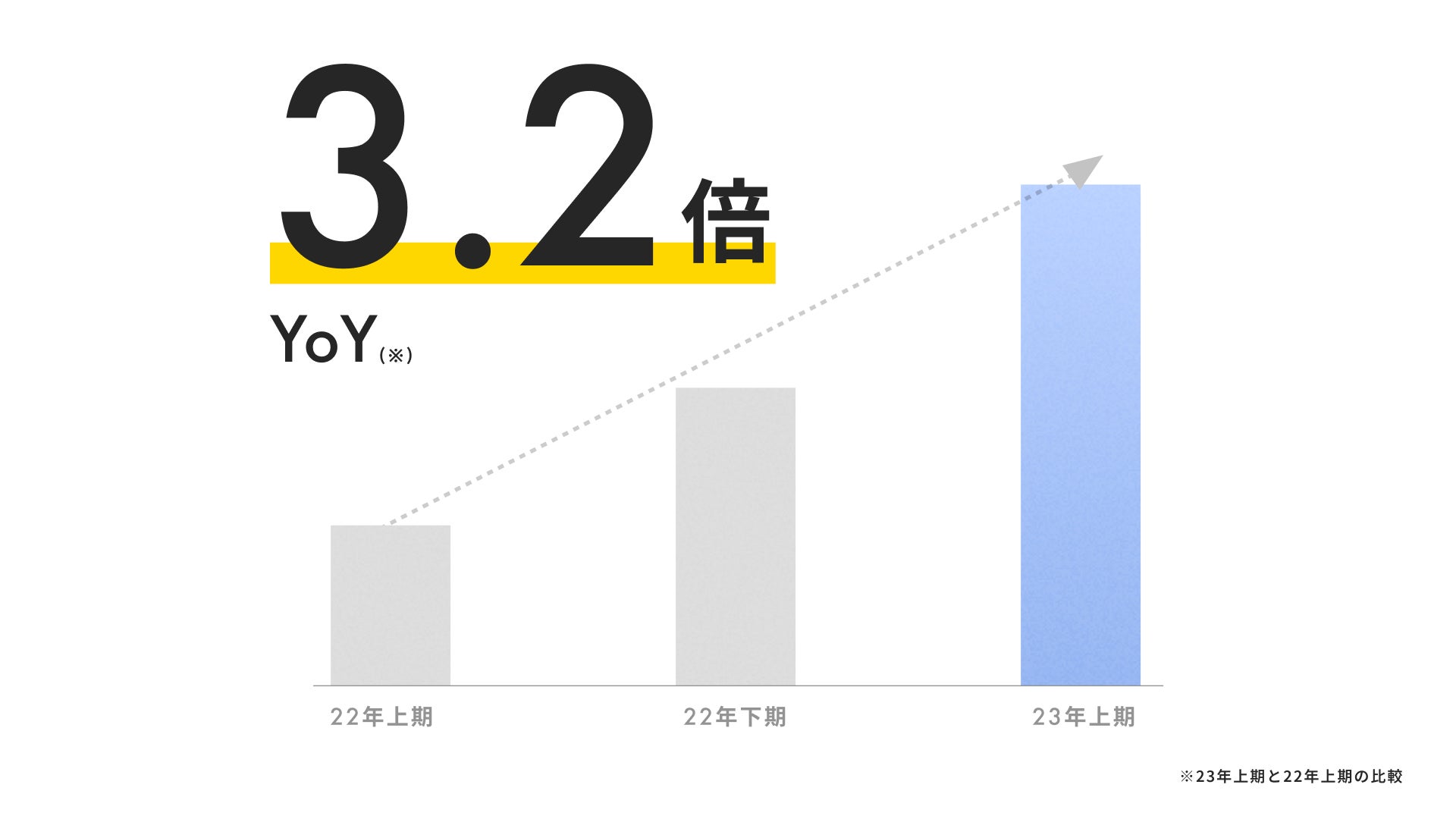 スキマバイトサービス「タイミー」上での、求人募集人数は2018年から一貫して高成長を継続しており、前年同期比で約3.2倍の成長となりました。