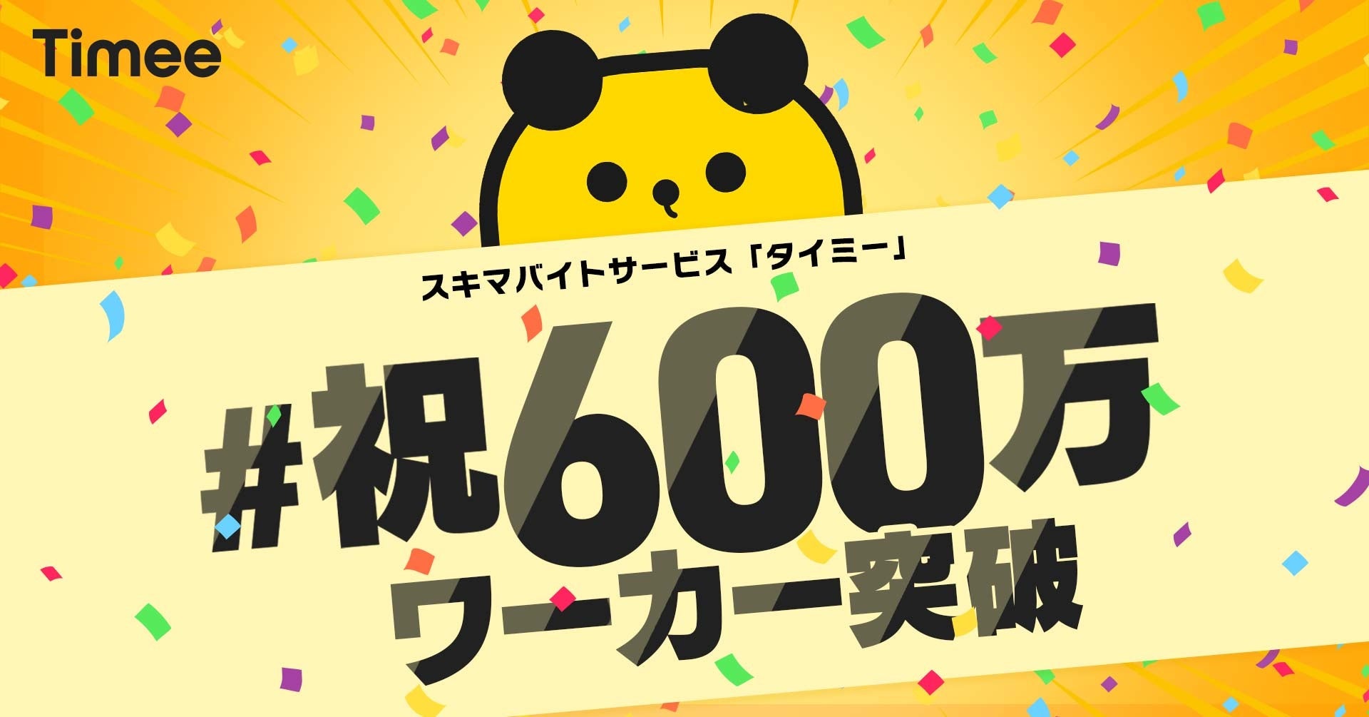 株式会社タイミー(所在地:東京都港区、代表取締役:小川 嶺)が提供するスキマバイトサービス「タイミー」は、累計ワーカー(※1)数が600万人を突破しました。