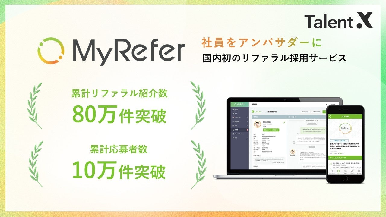 TalentX、リファラル採用サービス「MyRefer」累計リファラル紹介数80万件、応募数10万件を突破