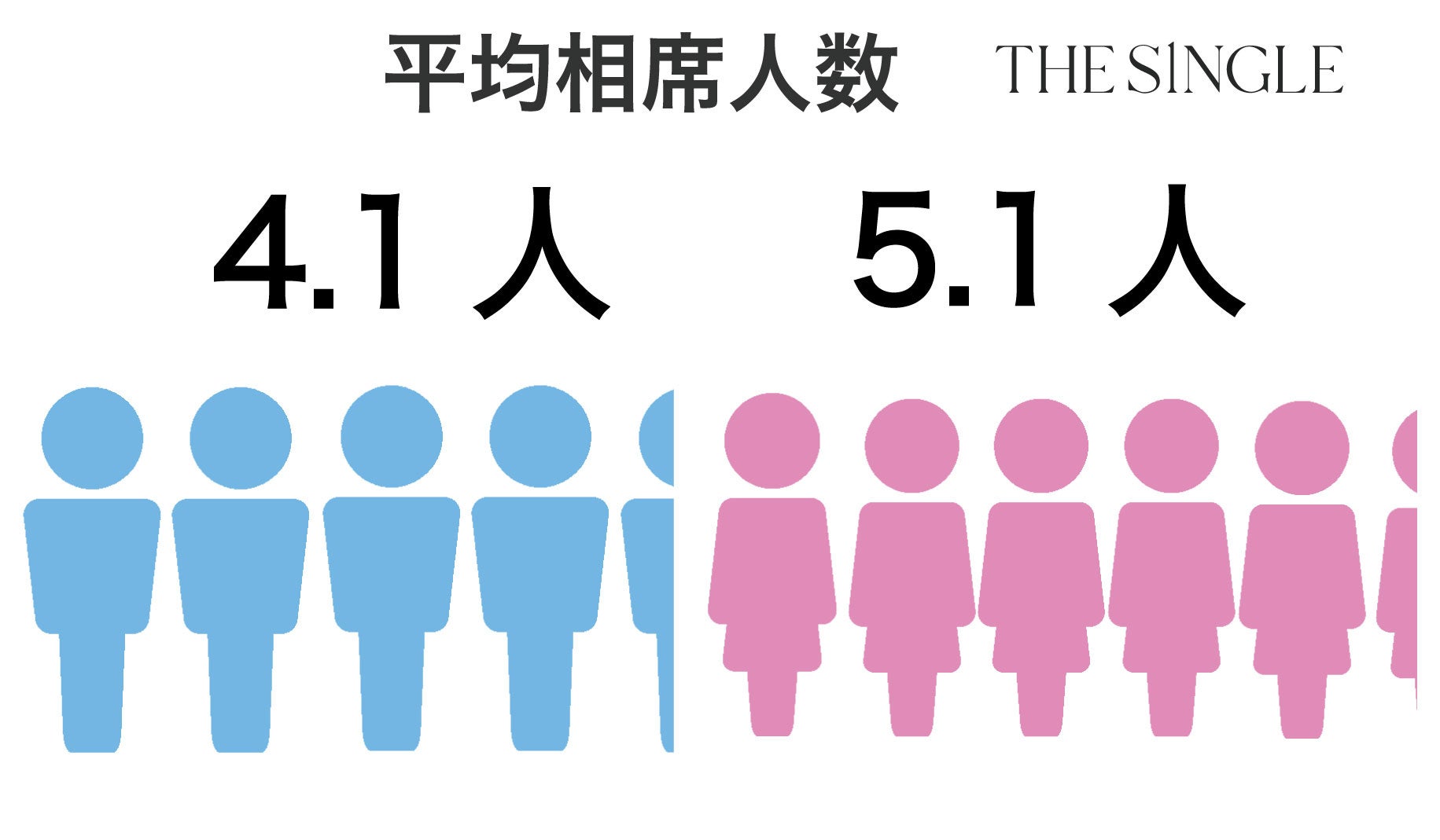 2023年10月のTHE SINGLEの平均相席人数は男性は4.1人、女性5.1人となりました。