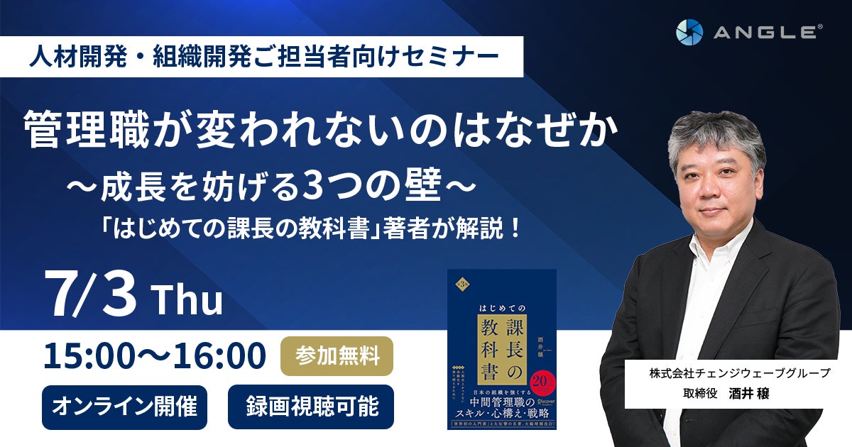 【7月3日開催 オンラインセミナー】管理職が変われないのはなぜか─『はじめての課長の教科書』著者が語る「成長を妨げる3つの壁」