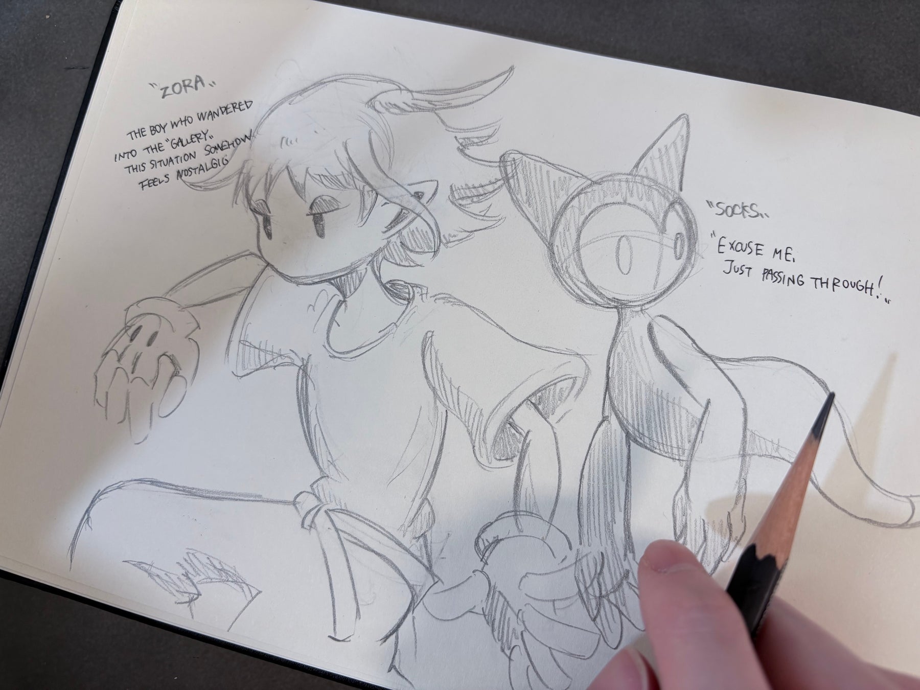 会場には作品だけでなく、出展アーティストのこれまでの制作にまつわるエピソードが書かれたカードを設置します。テーブルに置かれた制作エピソードのカードを鑑賞者は発見し、それぞれのエピソードと描かれたイラストや写真をみて、作家の人柄や感性をより知ることができます。エピソードによって、きっと作品をもう一度眺めたくなることでしょう。