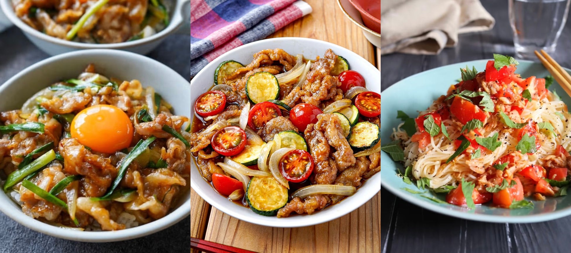 夏バテのときは「そうめん」が食べたくなるというアンケート結果が出ていますが、それだけでは栄養が不足し、なかなか夏バテ解消にはつながりません。そんなときは冷しゃぶやトマト、きゅうりなどの夏野菜や香味野菜をトッピングした冷やし麺にしたり、いろいろな具材をご飯に乗せてお茶漬けやだし茶漬けにしたりするのがおすすめです。また、お酢でさっぱりと食べられる、焼き浸し、南蛮漬けなども、肉や野菜をバランスよく食べられるので良いでしょう。