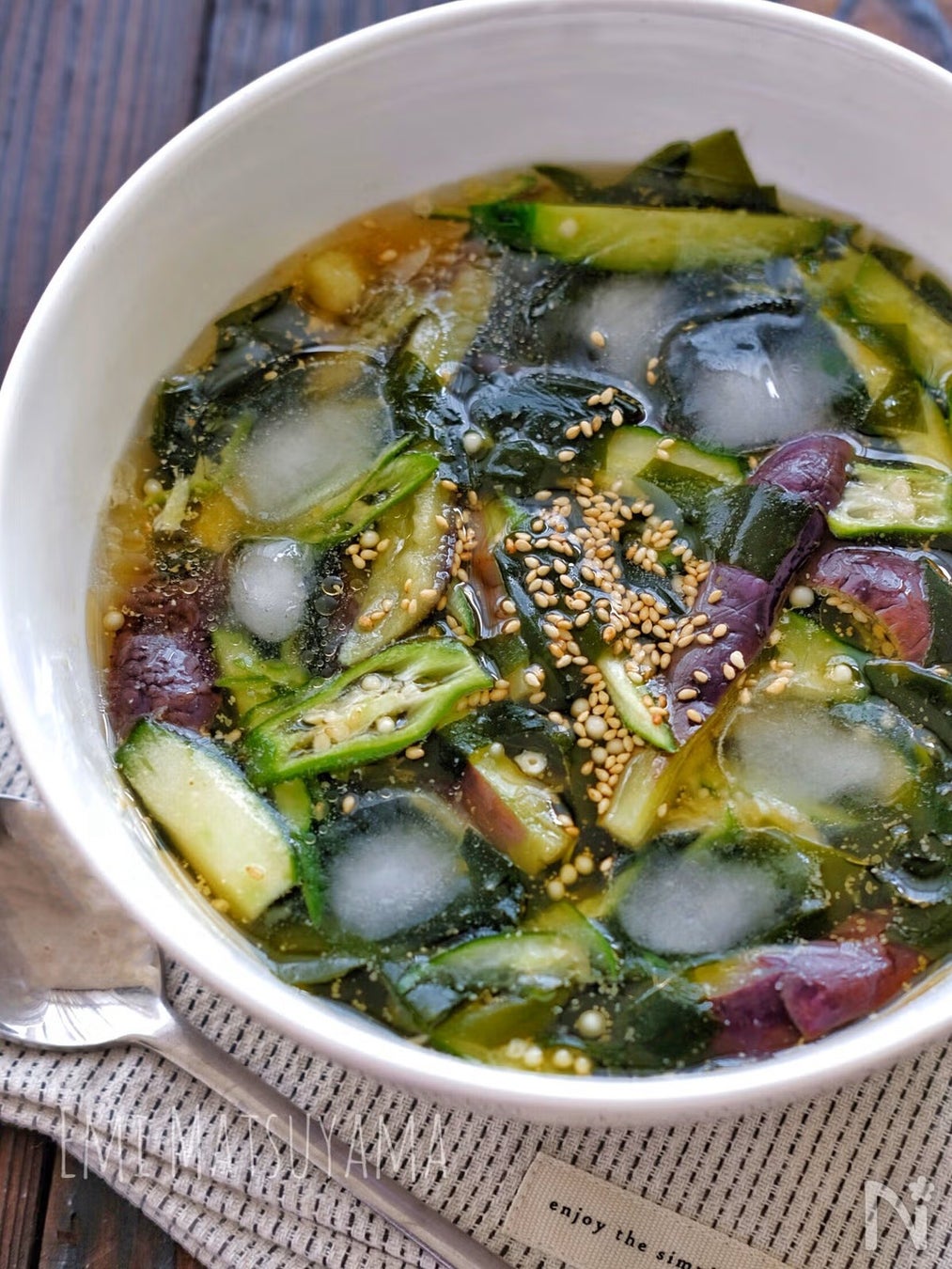 韓国料理*夏野菜とわかめの冷たいスープ(ネング)