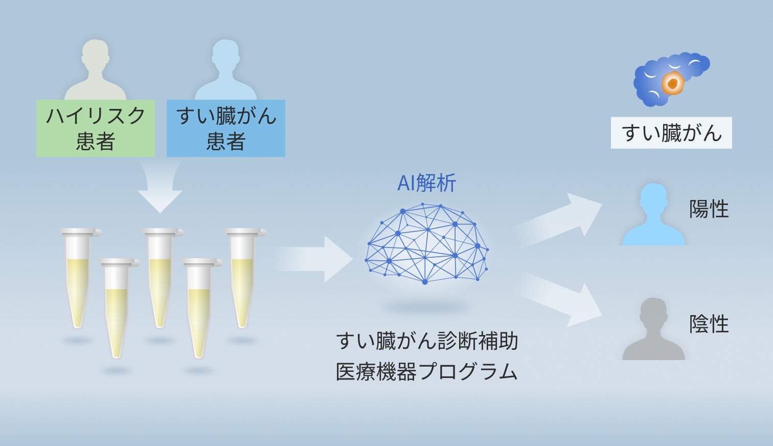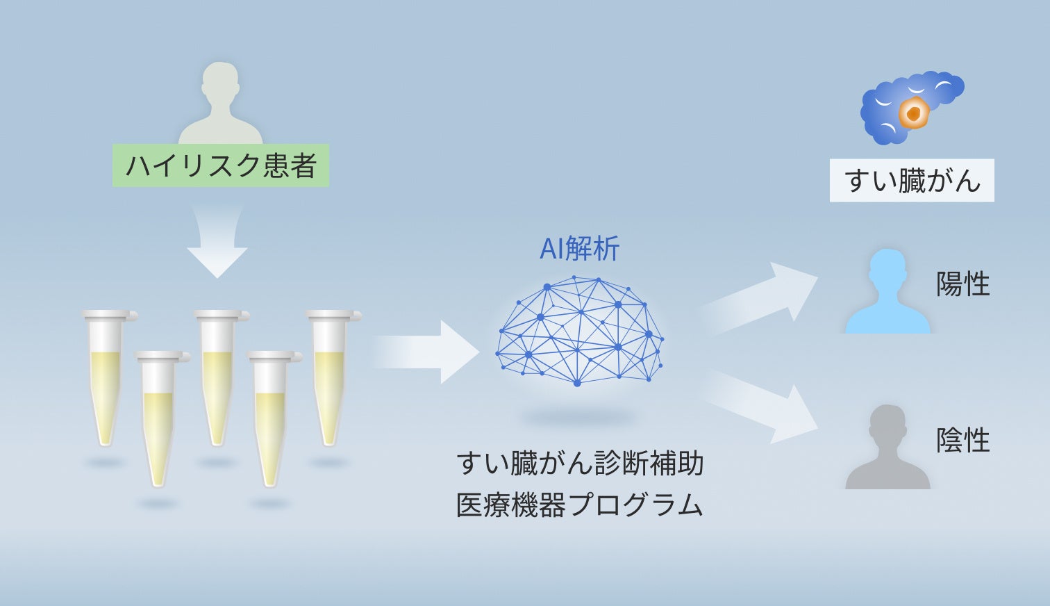 本医療機器は、既存の腫瘍マーカーや腹部超音波検査(US)と同様に、すい臓がんの臨床症状やすい臓がんのリスク因子を有し、すい臓がんの可能性が疑われる患者さんに対して用いられ、より精密な検査の実施を判断するための一助となることを想定しています。