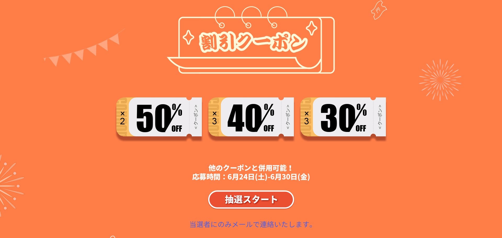 キャンペーン第二弾は「割引クーポン抽選イベント」です。