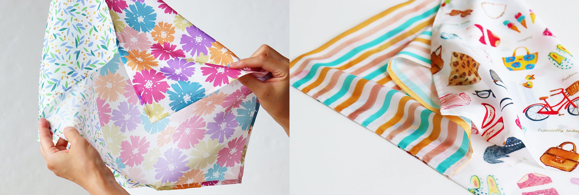 そこで、様々な布を扱い、生地の種類や加工、ノウハウを持つハンカチ会社が考え、ハンカチーフの新しい使い方を模索してたどり着いた『ふく』から『かぶる』へと形を変えました。
