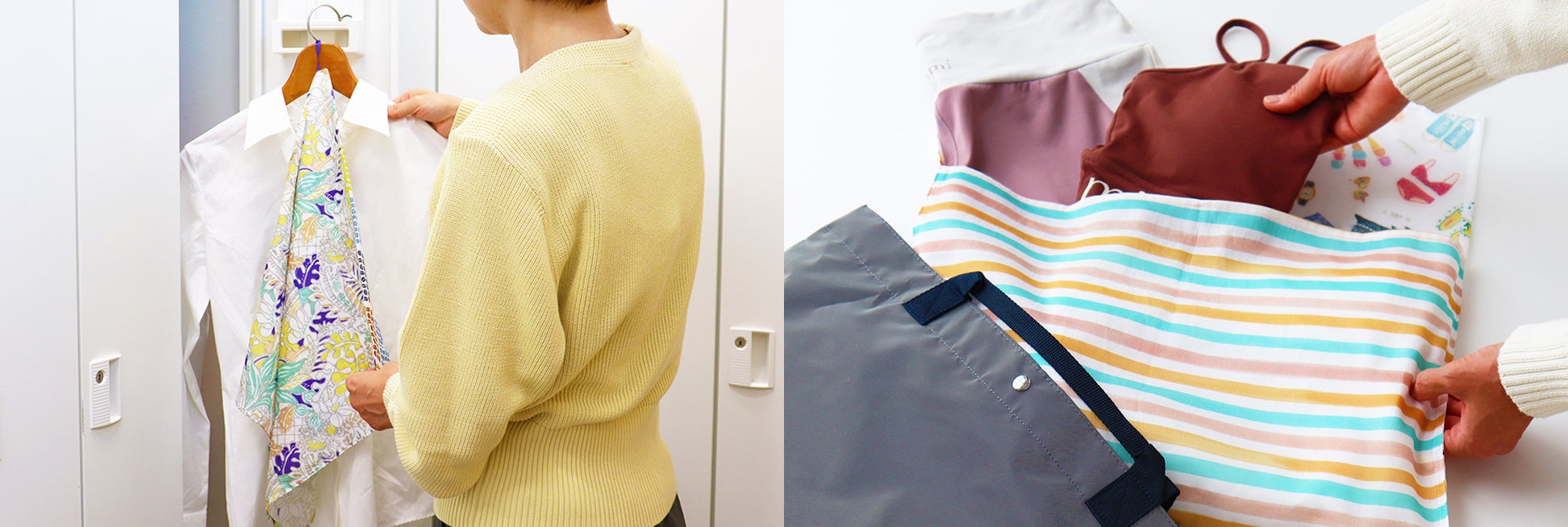 忙しい毎朝のスタイリング、せっかくお気に入りの洋服を選んでも、着替える際に、「襟元にファンデーションがついてしまった!」「口紅やチーク、アイメイクの汚れがついてなかなか落ちない!」「洋服を選び直す時間がもったいないのに…」と困った経験はありませんか?