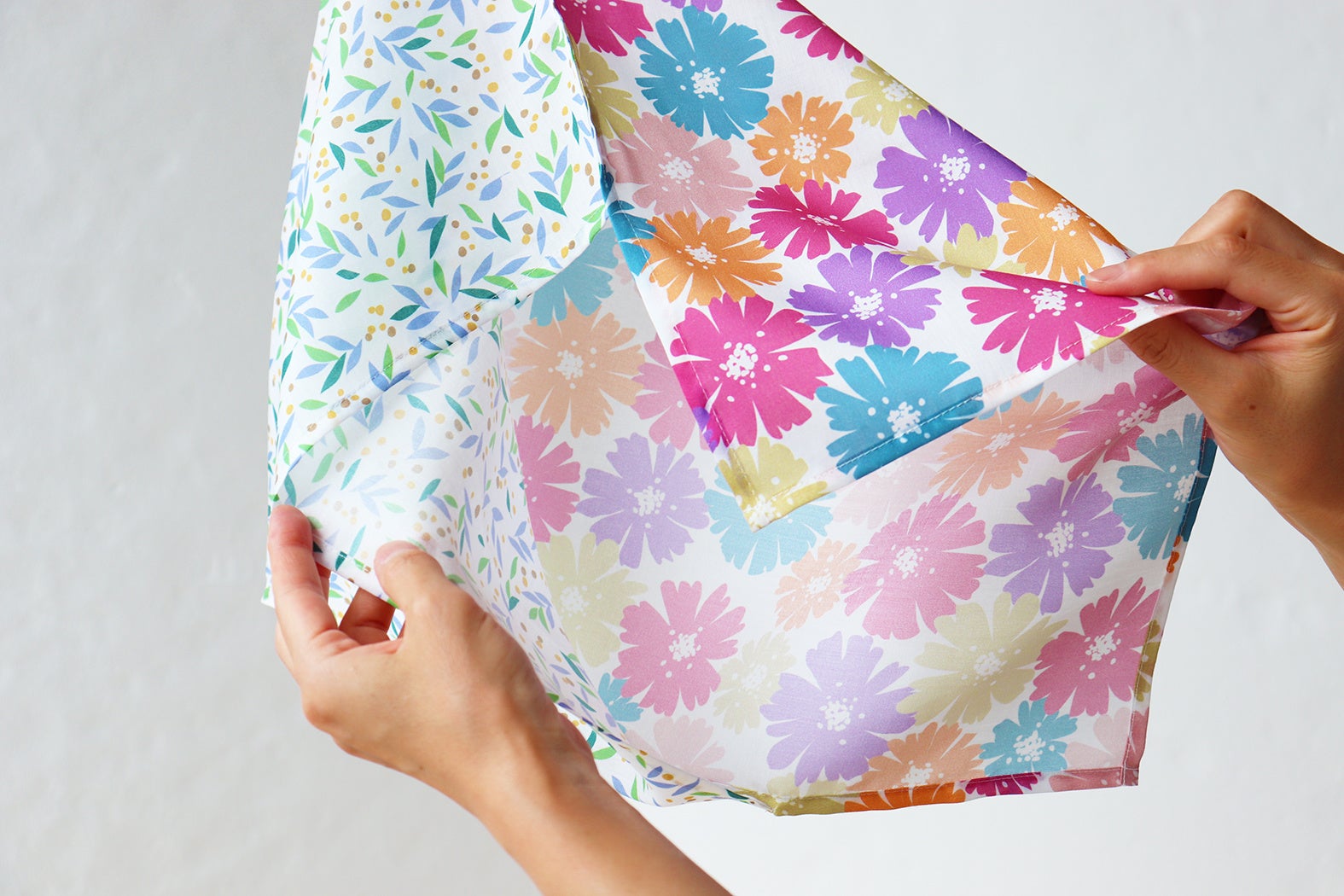 不織布のフェイスカバーは主に使い捨てですが、コットン生地の『かぶるハンカチ』は繰り返し洗って使えるので、環境にも優しいアイテムです。