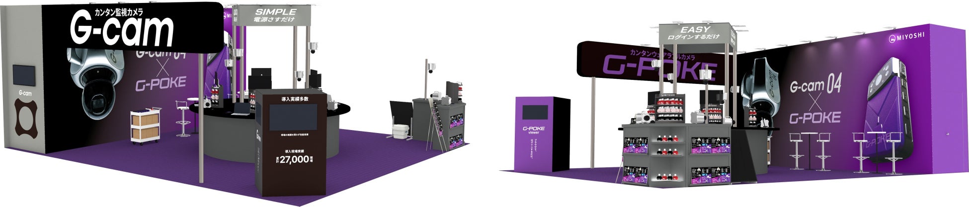 PXCでは、MIYOSHI様の課題やご要望をお聞きし、実際のブースにおける導線や機能がイメージしやすい3Dパースでの提案を繰り返し行うとともに、展開製品「G-cam」の設置方法や、細かなブース内造作など、展示会直前まで密にご対応させていただき、全体の進行管理およびブースの出来栄えについてご好評をいただきました。
