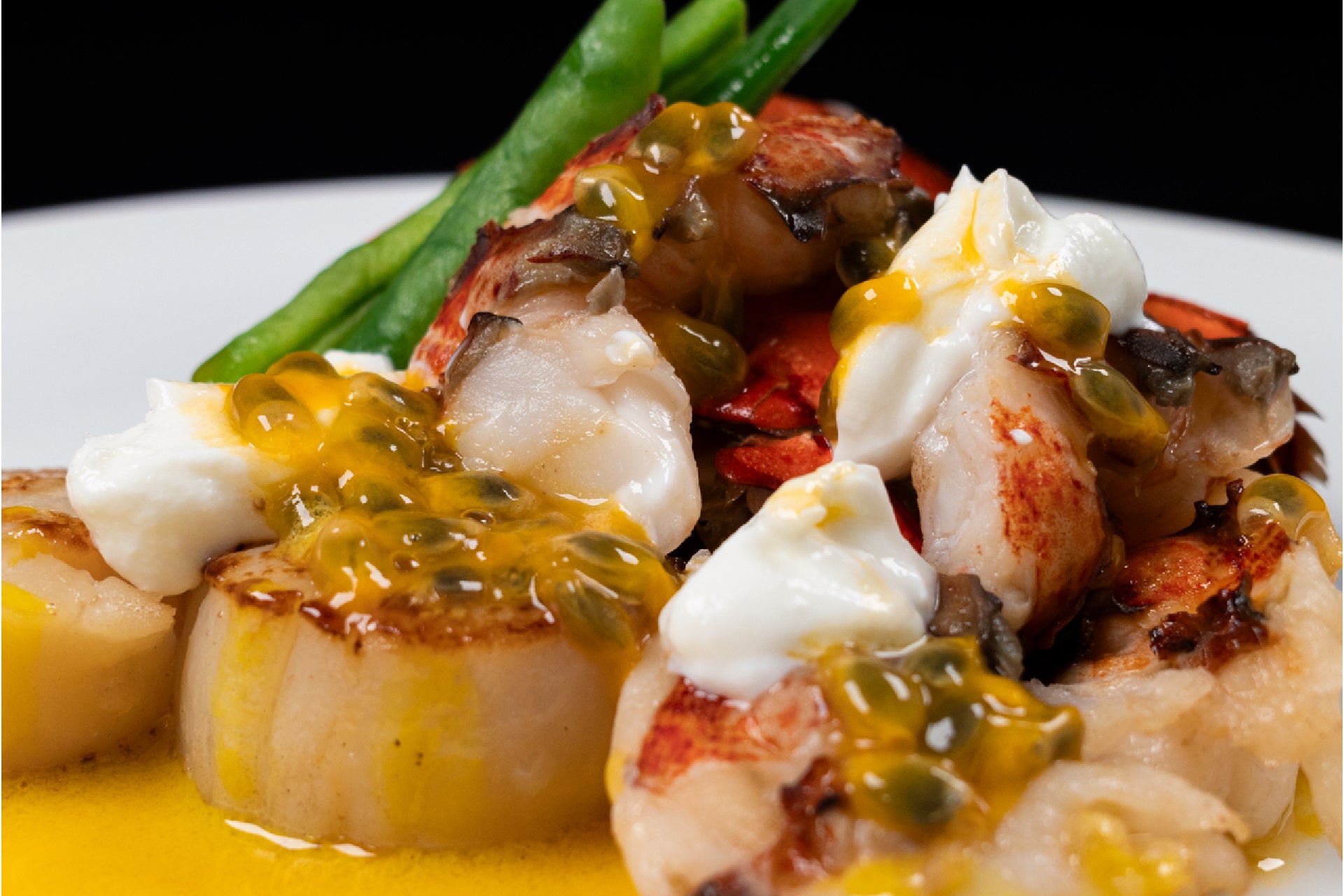 香ばしくソテーしたオマール海老と帆立貝に、サフランを贅沢に使ったクリームソースを合わせた、華やかで奥行きのある一皿。